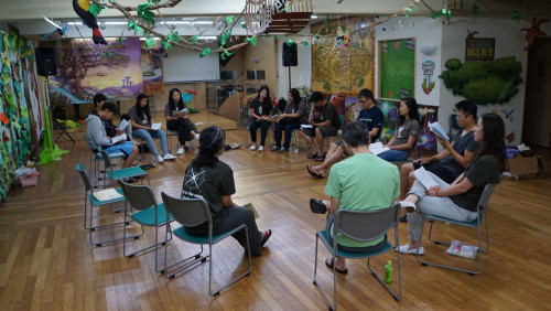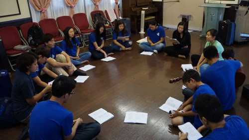 시부야교회에서 이번 VBS를 섬기는 분들과 합동 회의 후 서로 손을 잡고 고개 숙여 기도합니다.