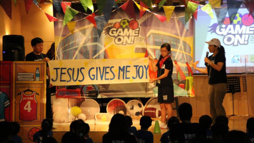 저냑가지, 내일 사작할 VBS을 위해서, 포스터과 장식들로 교회를 꾸몄습니자.