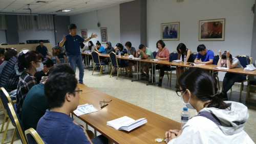 그러던 중 이틀전 공원에서 플레시몹 공연 후 만난 무슬림 학생이 예배실 문 앞에서 기웃거리는 것을 보게 되었습니다. 얼마나 반갑던지 버선발로 뛰어가서 맞이했는데요. 들어오는 것이 두려운 듯 문지방을 꼭 붙들고 밖에서 예배드리는 모습만 살피더니 돌아갔습니다. 큰 눈에 호기심과 두려움이 공존했었는데요... 아직 포로됨에서 벗어나지 못한 모습은 가슴 아팠지만 예배실 문턱까지 왔다는 것이 큰 의미를 주고 있기에 승리하신 주님을 찬양할 수 밖에 없었답니다.